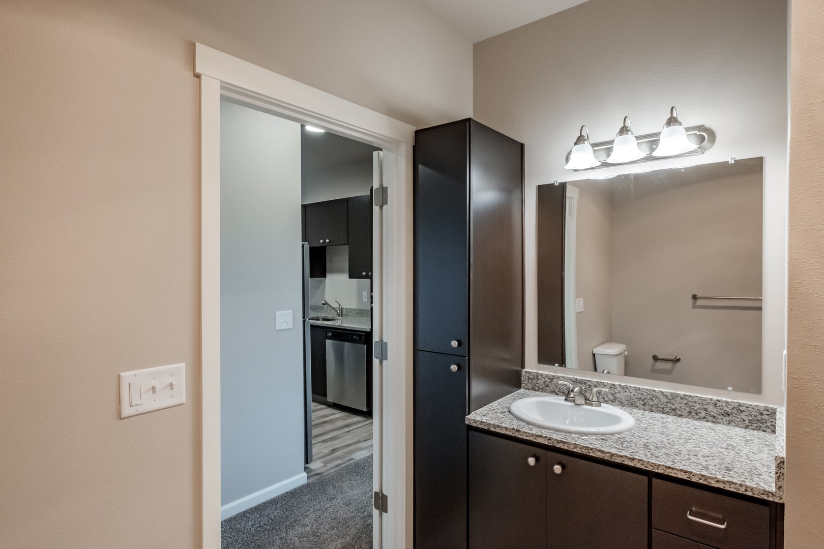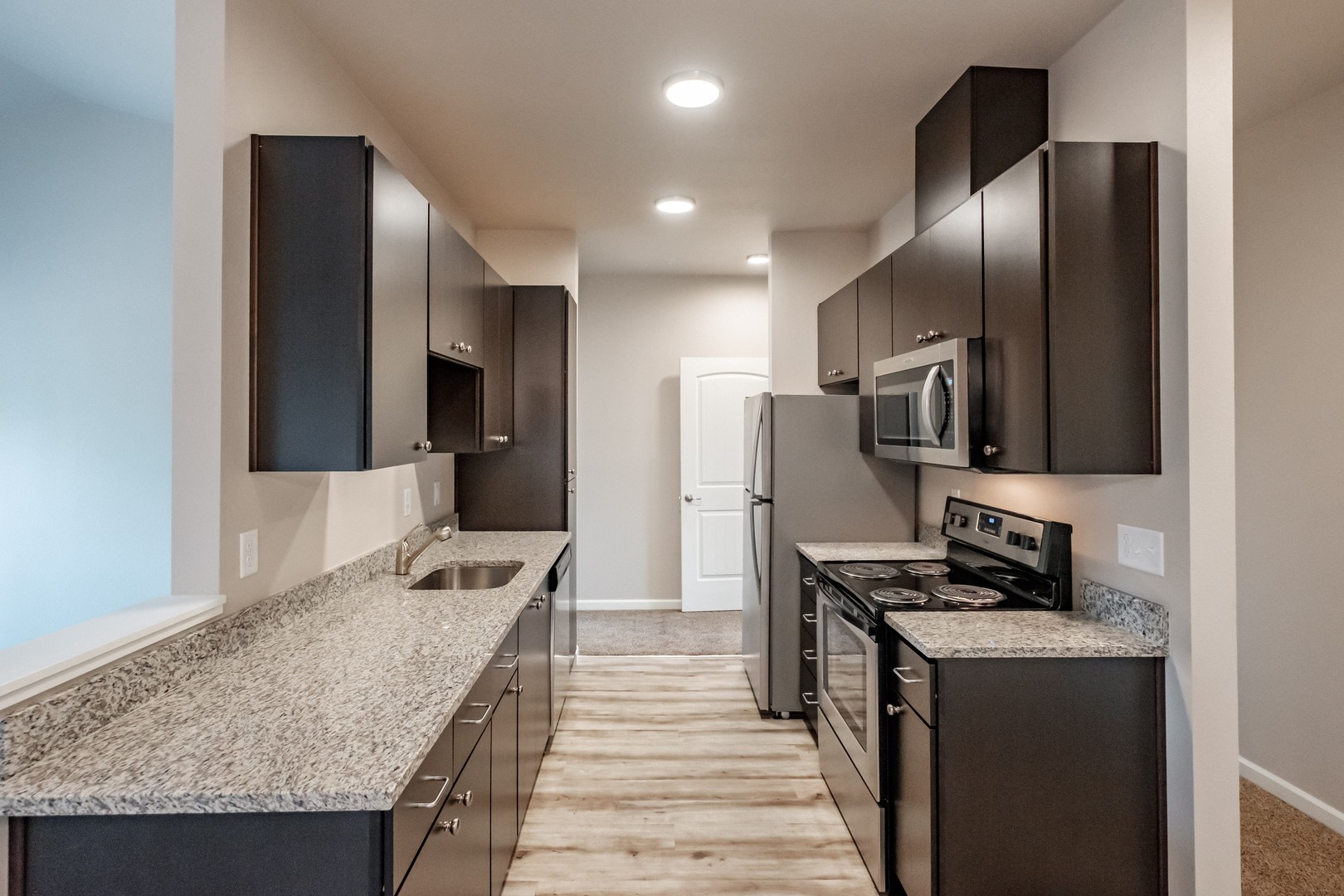 Each apartment includes a washer and dryer, as well as air conditioning for comfort. LED lighting throughout for energy efficiency and a convenient storage area located off each apartment. (725 -103 does not have a storage space on patio.) Equipped with modern stainless-steel appliances including dishwasher and durable granite counter tops. Every home has access to a private balcony/patio for outdoor enjoyment. These apartments also feature luxury plank flooring and carpeting.