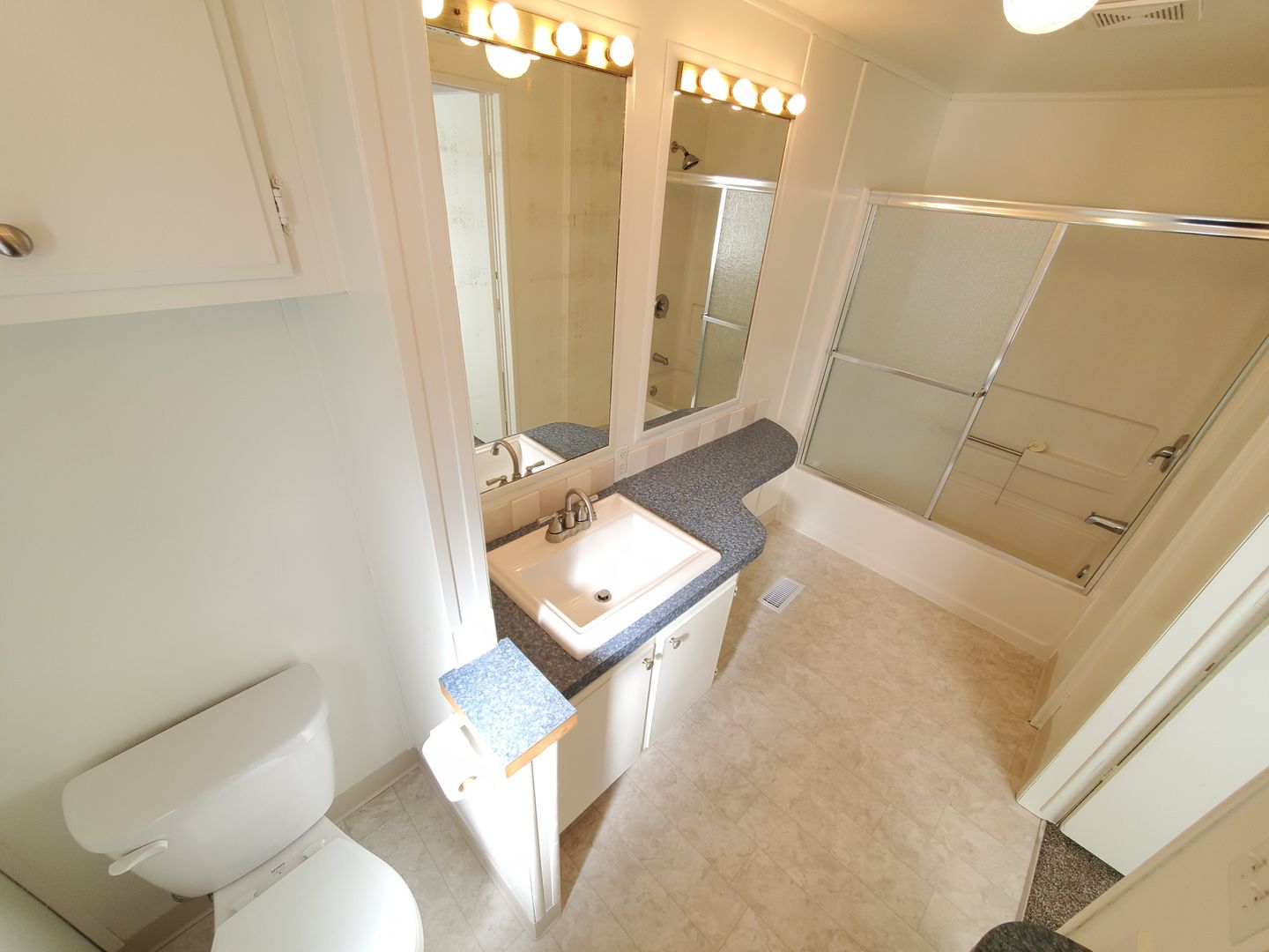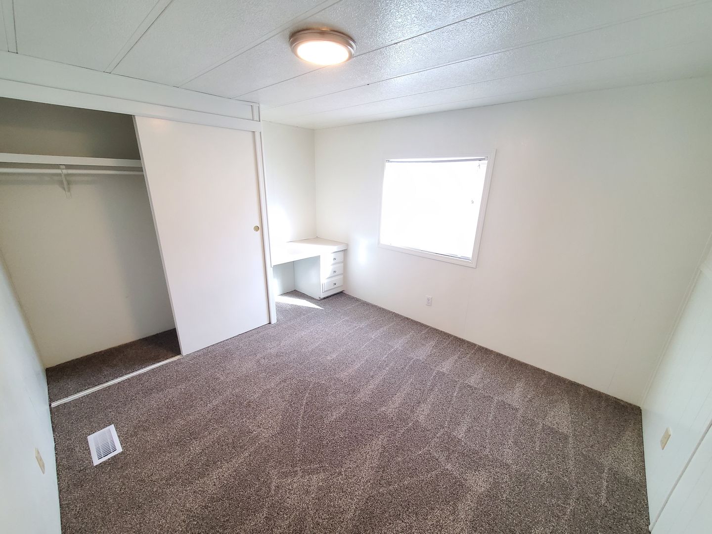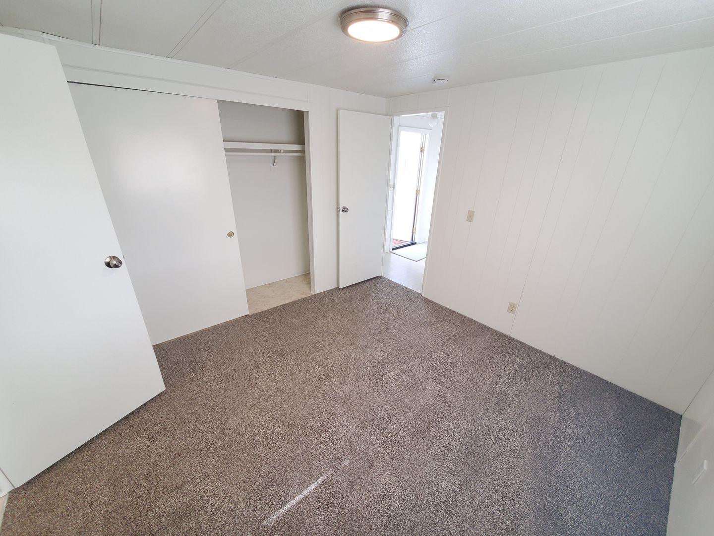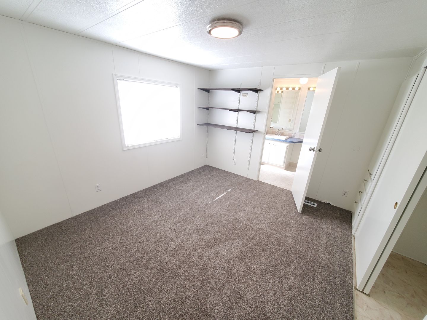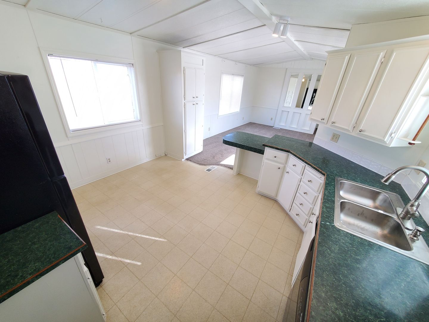 Single story newly renovated manufactured home with new carpeted floors throughout the dwelling.
