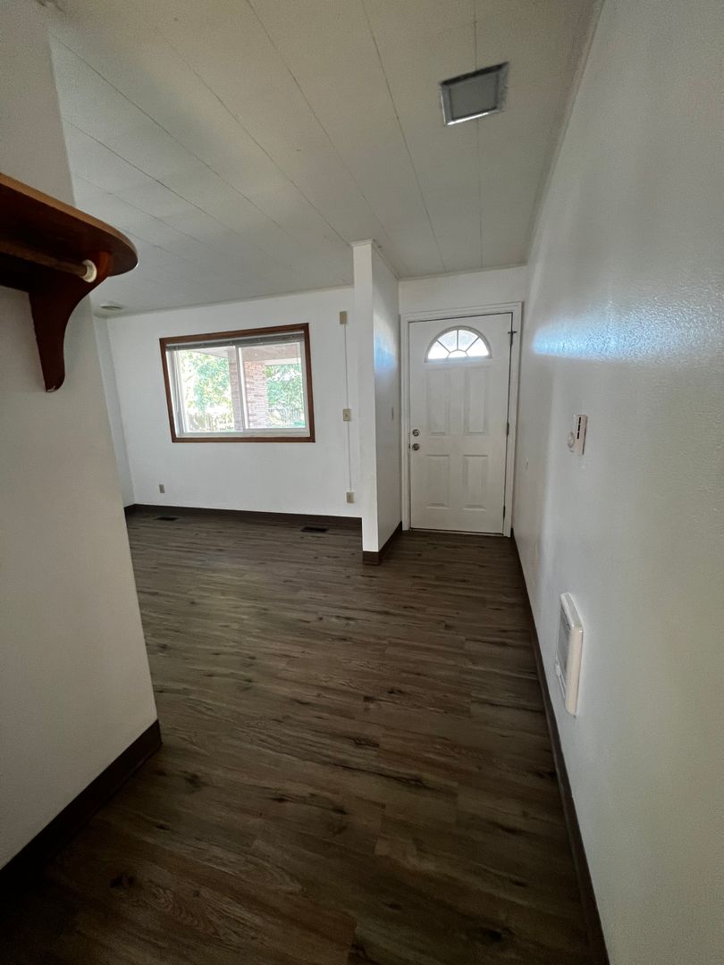 Pet friendly, 3 bedroom, 1 bath home with a fenced back area and off-street parking. Electric cadet heaters and electric range included.