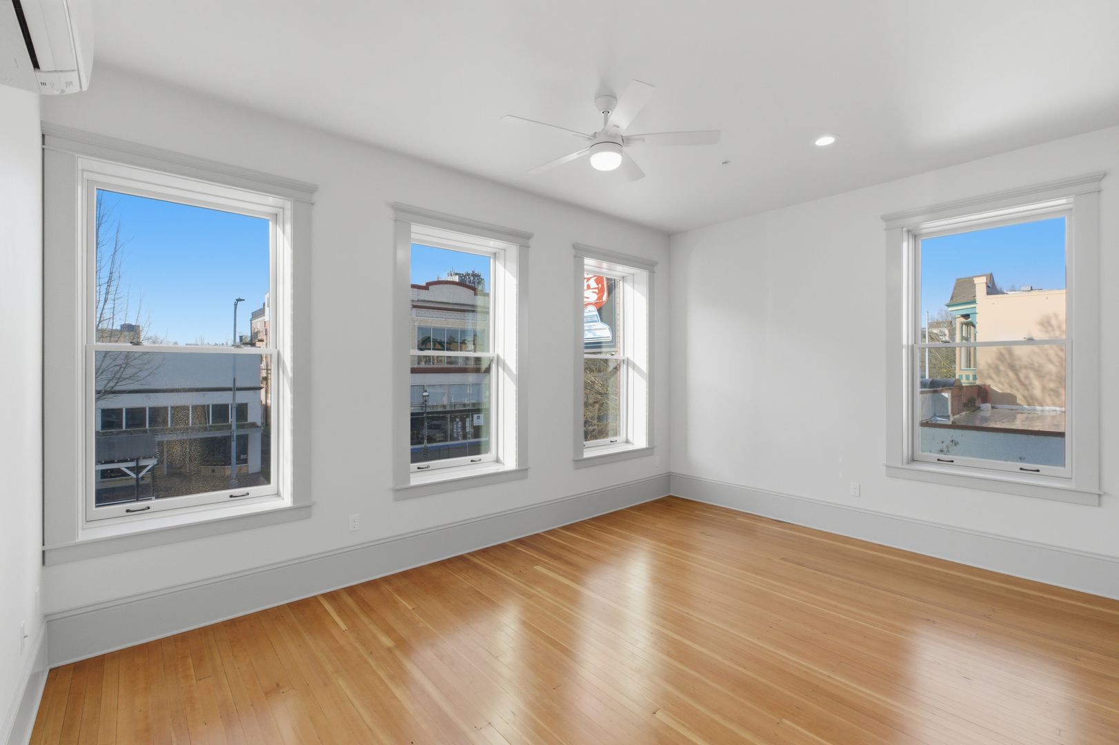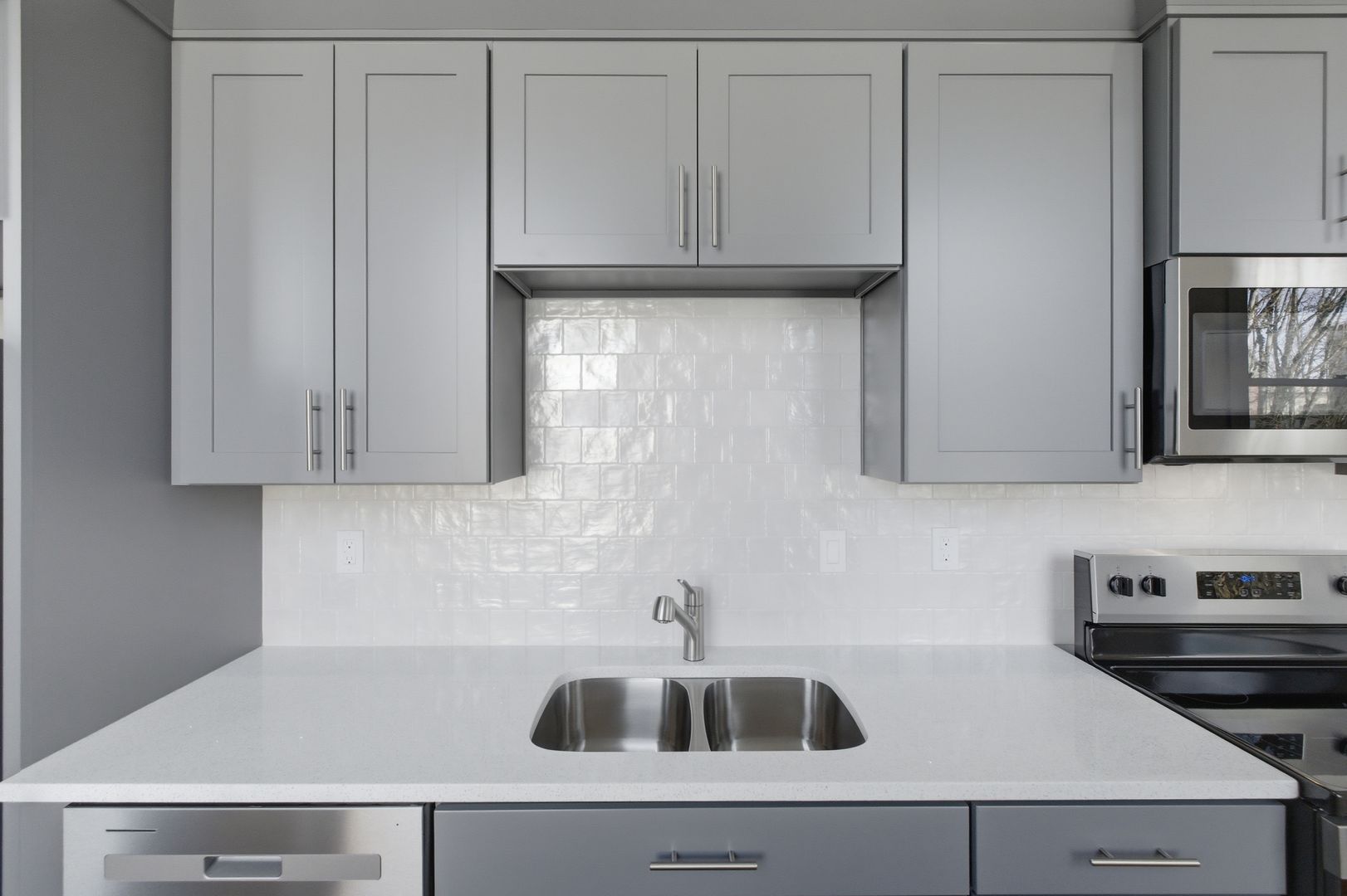 Modern stainless steel appliances, quartz countertops, tile backsplash in the kitchen, and real hardwood floors make Court Street Apartments an appealing place to call home.