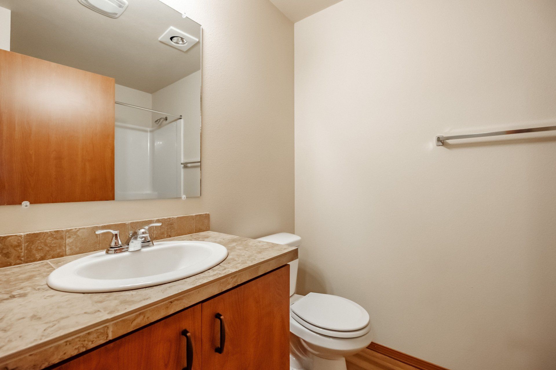 - Faux wood and carpet flooring for quality living