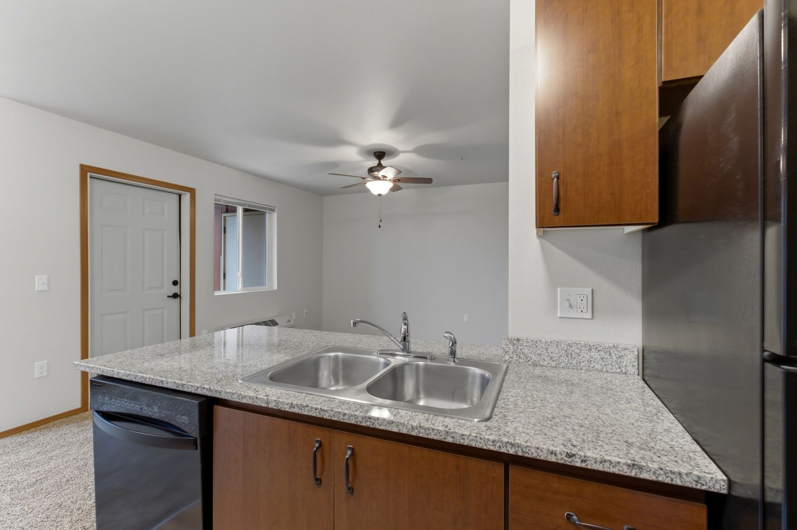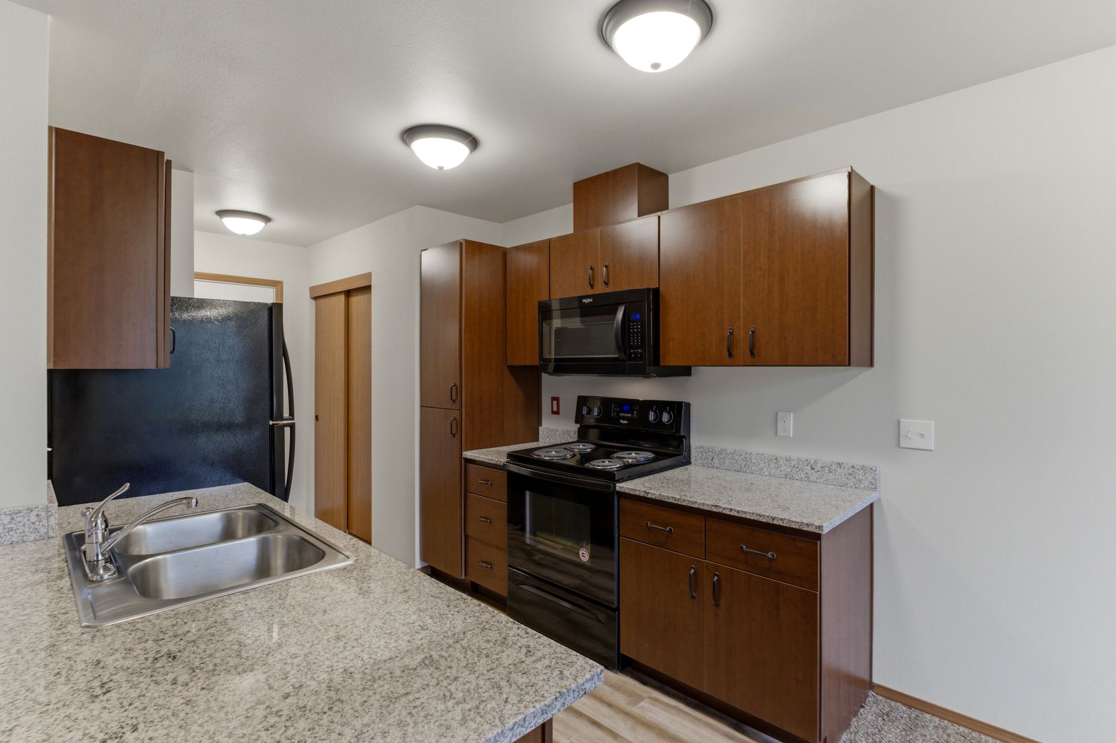 Oak Springs Apartments features modern affordable apartment homes including high quality finishes like granite counter tops, euro-style wood cabinets, black kitchen appliances, air conditioning, washer and dryer, private balcony, and so much more.