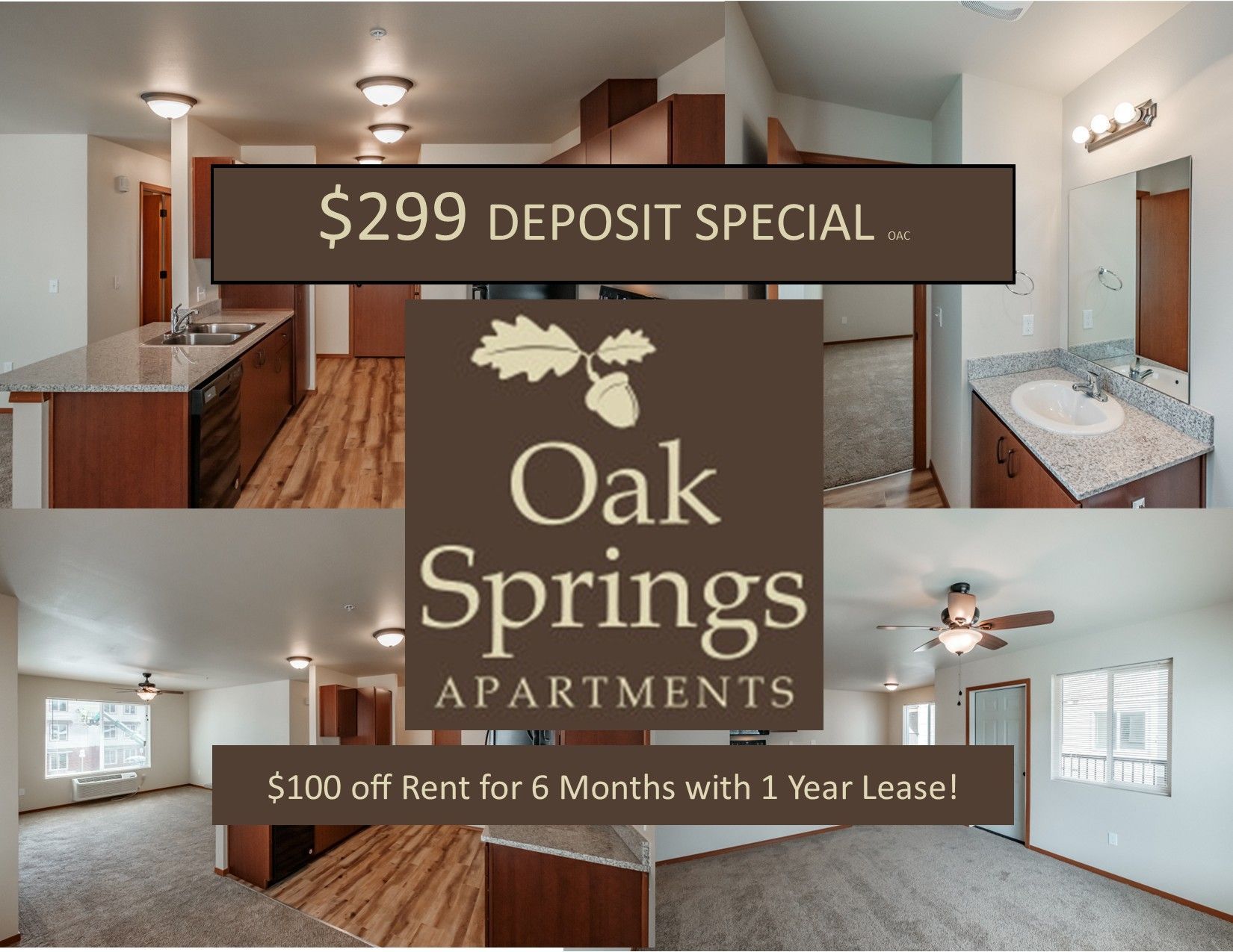 Oak Springs Apartments features modern affordable apartment homes including high quality finishes like granite counter tops, euro-style wood cabinets, black kitchen appliances, air conditioning, washer and dryer, private balcony, and so much more.